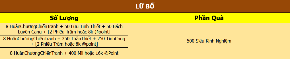 Sự kiện áp dụng cho Server Lữ Bố