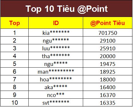 Danh Sách Top 10 Tiêu @Point